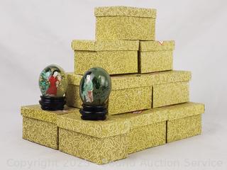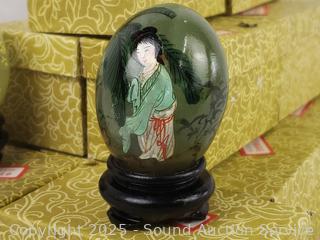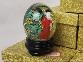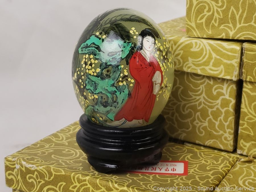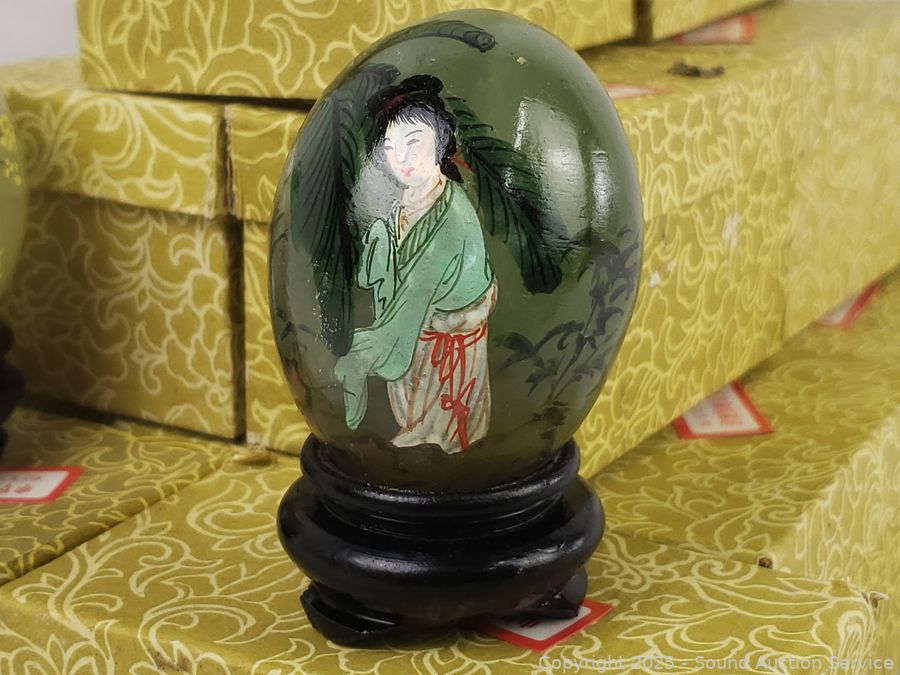 Lot #0160: 15ct Asian/Oriental Hand Painted Glass Eggs w/Stands