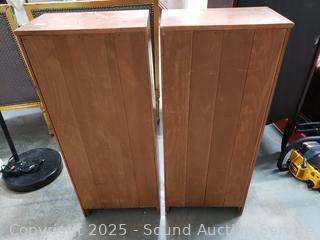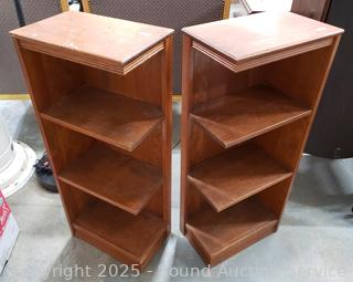 Lot #0025: 2 Small Deco Style Corner Shelving Units