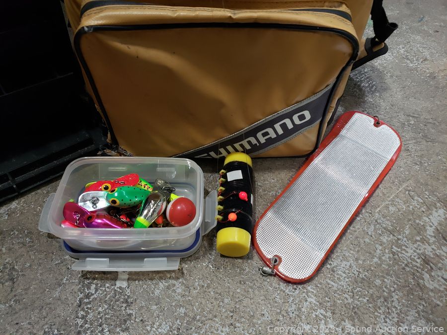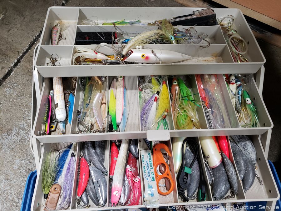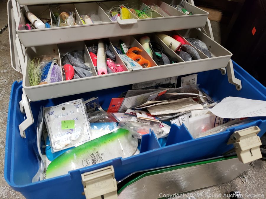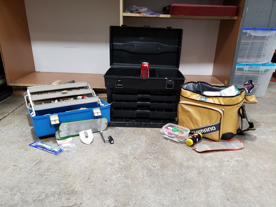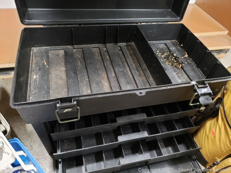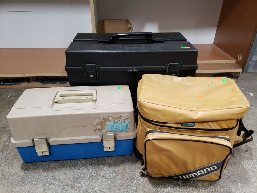 Largest box is empty the other 2 are full of tackle. Refer to photos for lot contents, more details. Plano Phantom Pro 14" H x 21" x 11.5", Plano 1710, 8.75" H x 17" x 8.5" tacklebox, 11" H x 13" x 8" insulated bag.