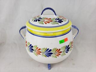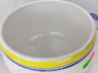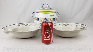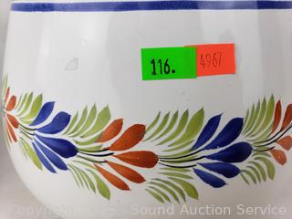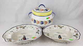 Some crazing. 3" x 10.5" x 8" quimper bowls, 9" H x 8" Dia. pot.