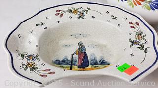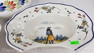 Lot #0116: 2 Vintage French Quimper Barber Bowls & Footed Pot