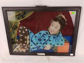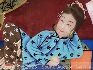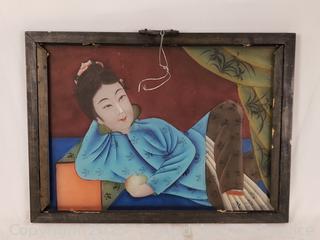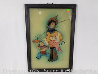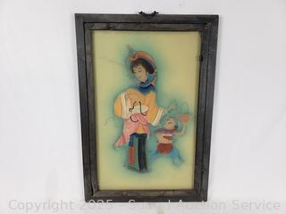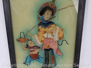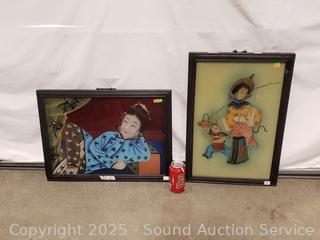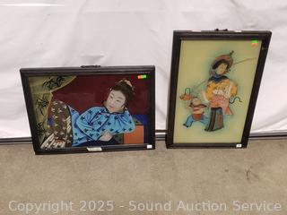 Lot #0209: 2pc Oriental Painted Glass Artwork