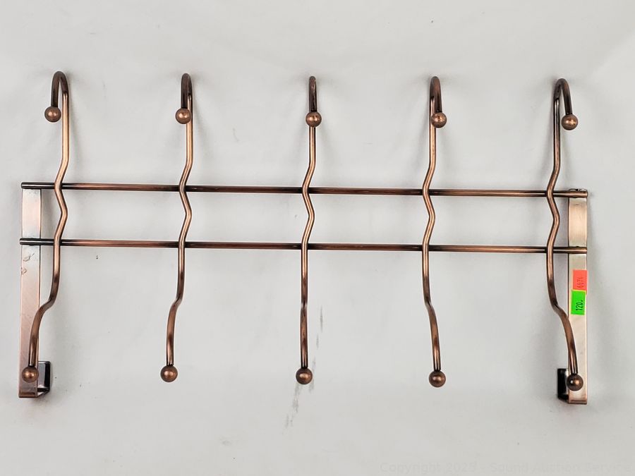 13" to 18" coat hat racks, 9" x 24" towel bar, 14" dia. metal art compass.