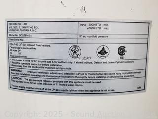 Lot #0320: 45,000 BTU Patio Propane Gas Heater - Parts/Repair