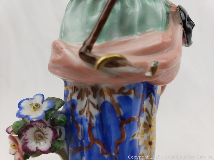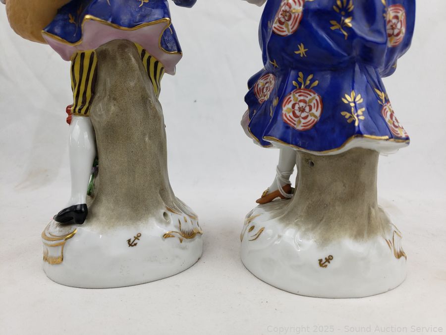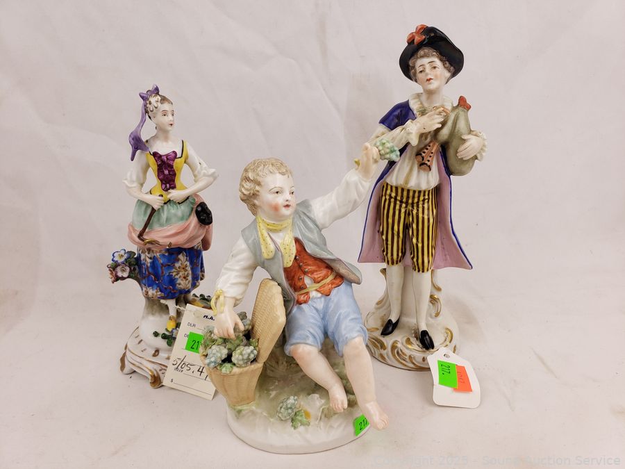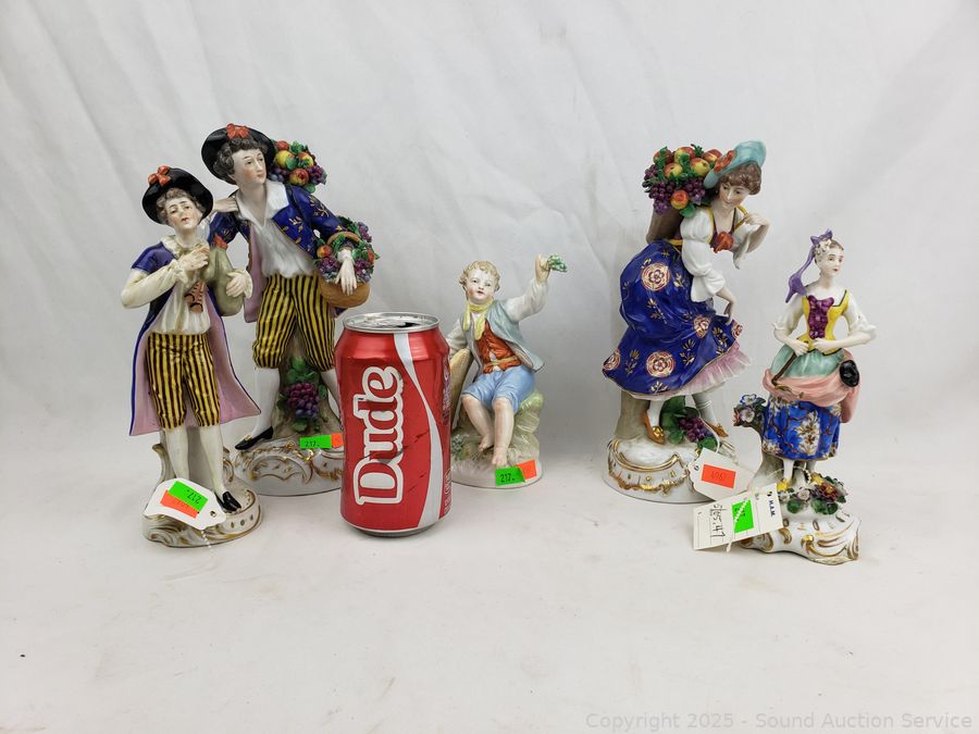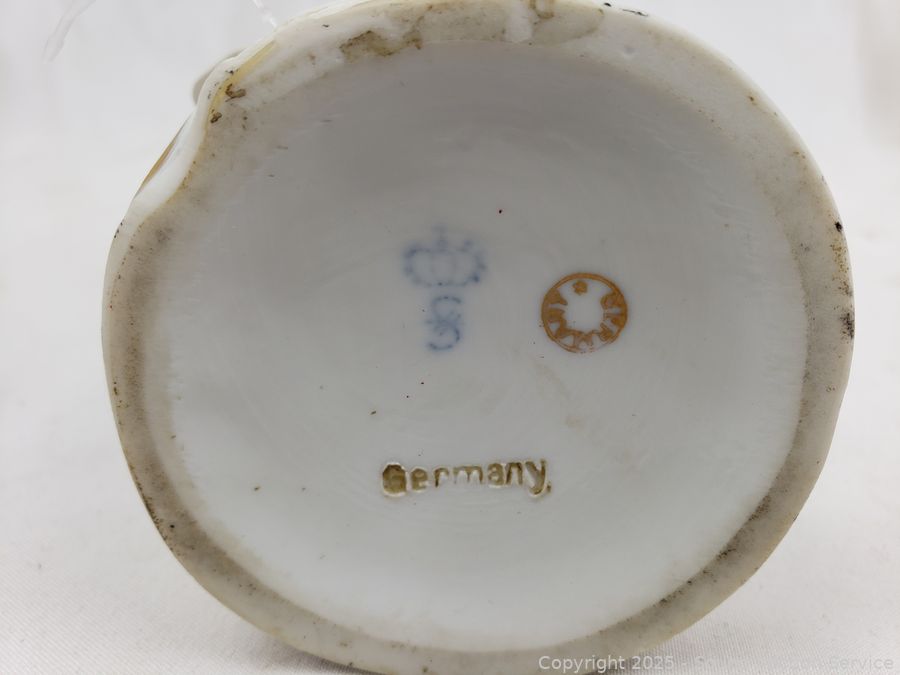 6" to 9" tall. Sitzendorf, Several Chelsea? Dresden? gold anchor marks. Refer to photos for lot contents, more details.