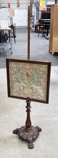 Lot #0031: Antique Ornate Clawfoot Crewelwork Fire Screen