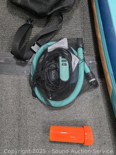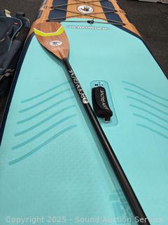 Appears complete, with paddle, pump, tether, storage bag. 11ft x 34" x 5.4".