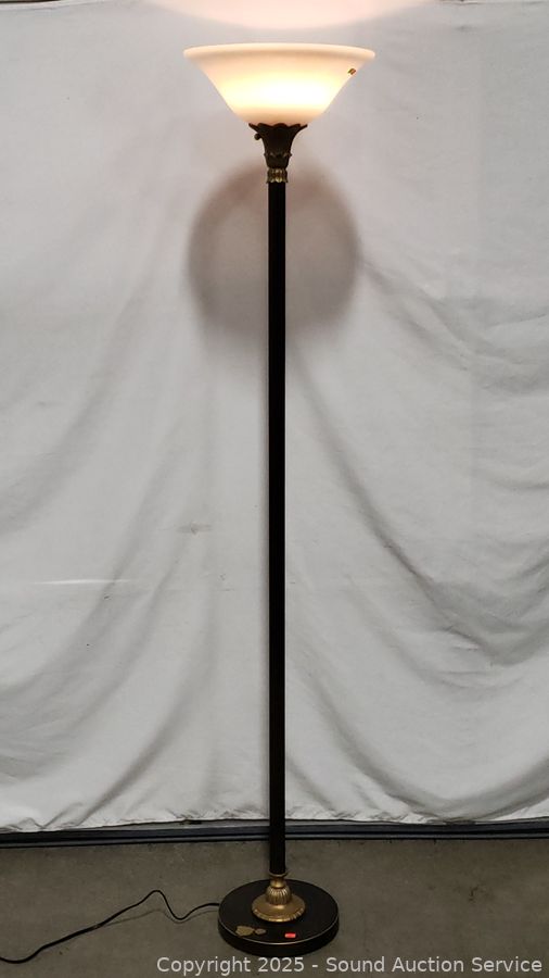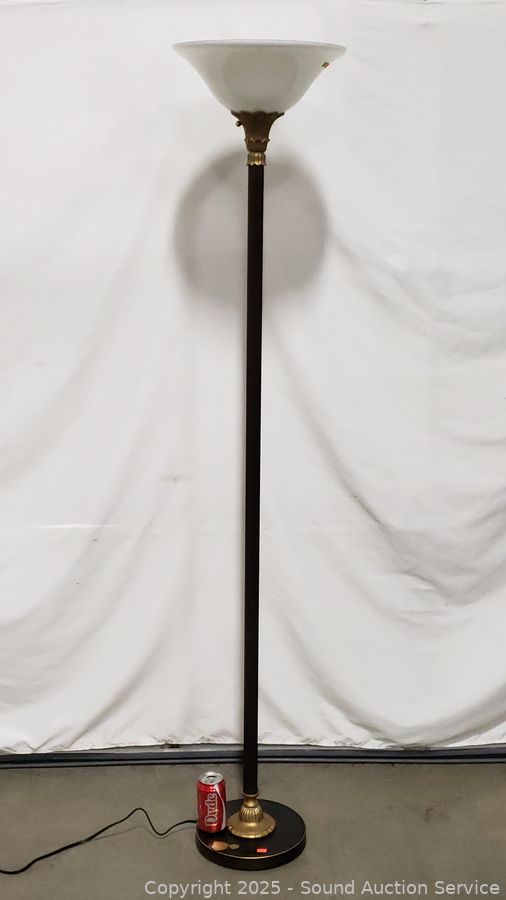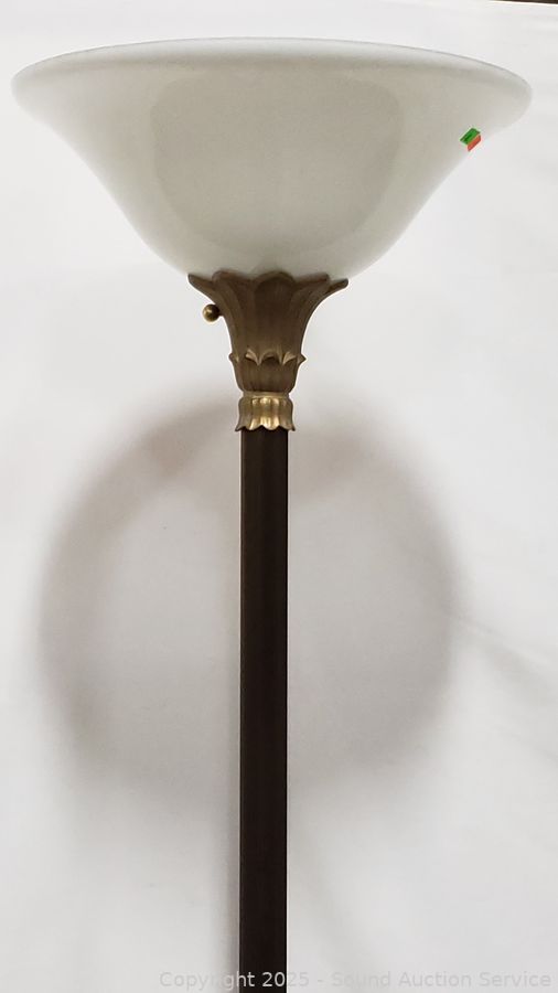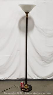 Lot #0030: Bronze Finish Frosted Glass Shade Floor Lamp