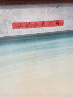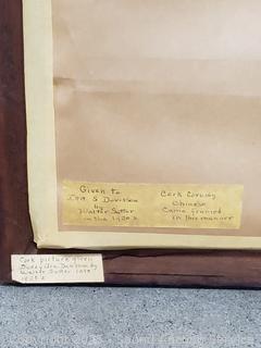 Has art information, provenance on the back. 34.5" x 22.75". Some scuffs, wear to finish.