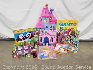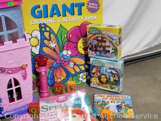 Lot #0020: Doll, Dollhouse, Glitter, Art/Coloring Books, Puzzles