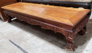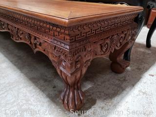 Lot #0038: Intricately Carved Claw Foot Camphor? Wood Table