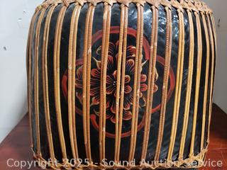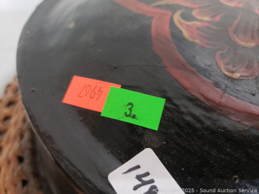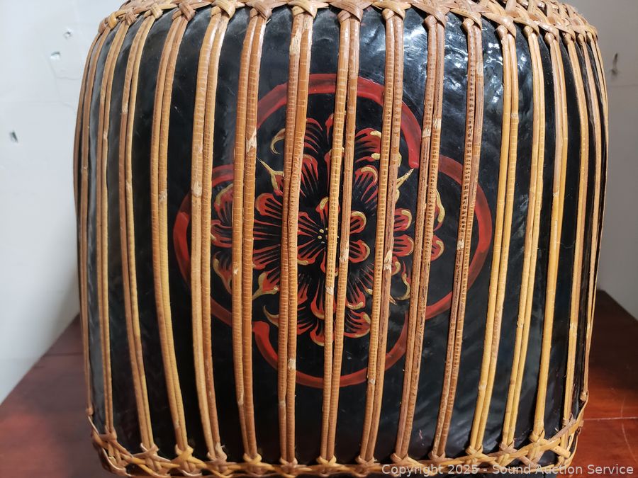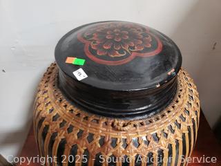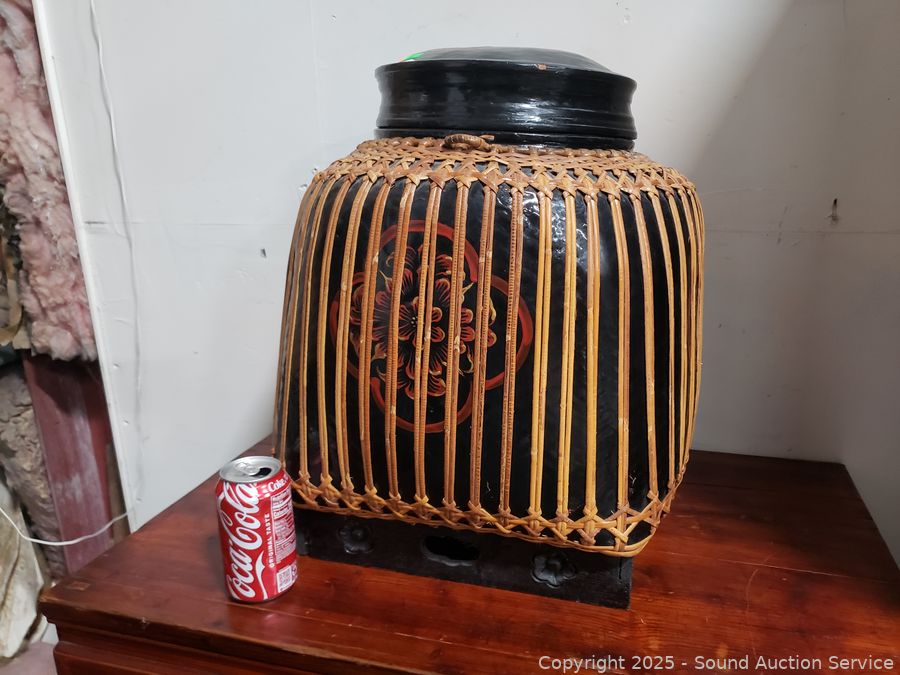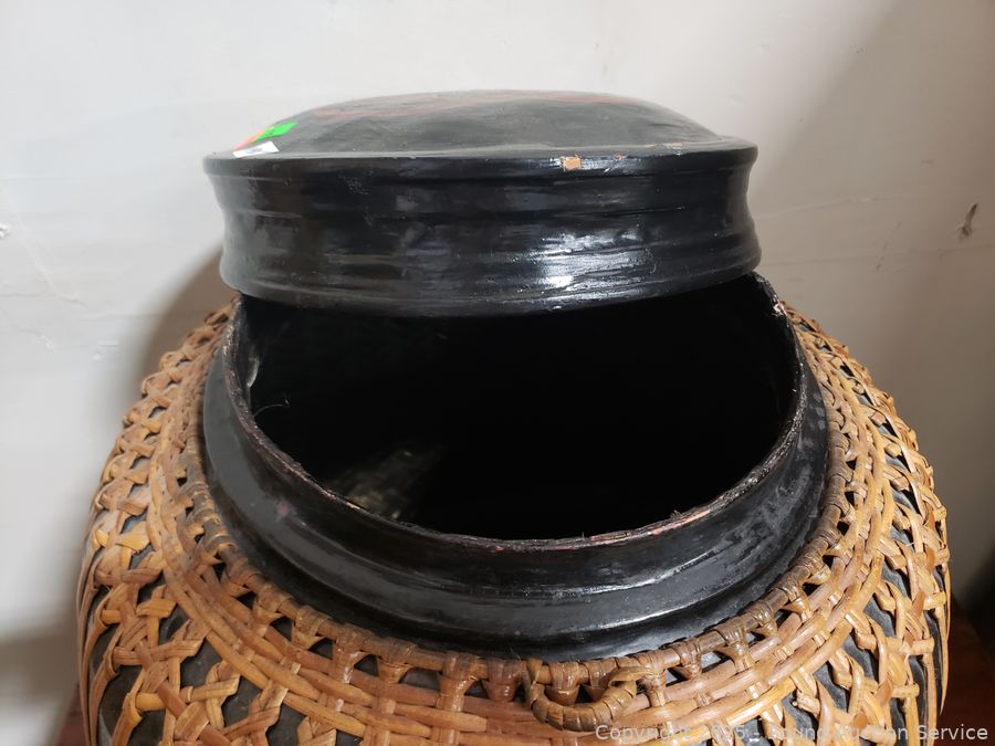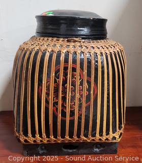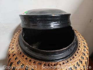 Lot #0003: Large Lacquered Container w/Basketry Overlay