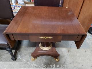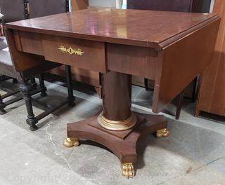 Lot #0011: Mahogany Drop Leaf Pedestal Table w/Gilded Feet