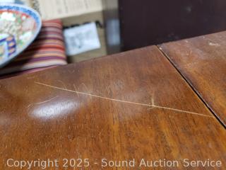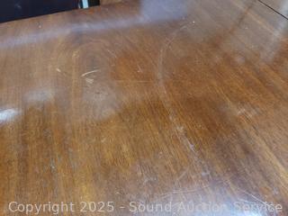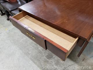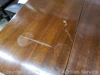 Single drawer. Some scuffs, scratches in finish. 29.75" H x 28.25" x 32" with (2) 9.75" leaves.