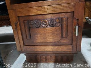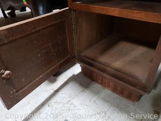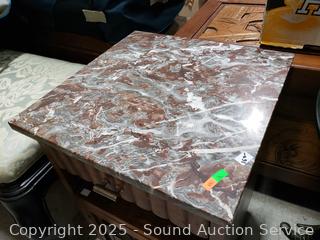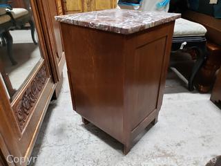 Lot #0034: Marble Top Oak Single Drawer Side Table Cabinet