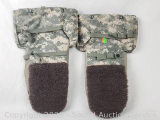 Extreme cold mittens are in good condition. Radios work, comes with "AA" batteries, rechargeables are untested, have some corrosion. Muff pouch has some wear from use.