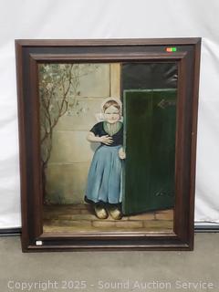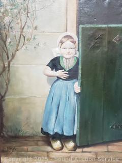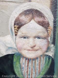 Lot #0057: Original Signed P.Mos. Vintage Dutch Maid Oil Paining