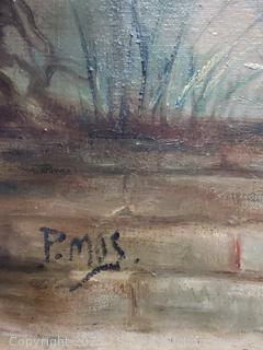 Some scuffs on frame, don't see any major issues. Painted on canvas. 34.5" x 28.5".