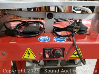 Has power, not functioning properly, arm/blade stutters, starts/stops sporadically. 45" H x 36" W x 14". Signs of wear from use.