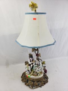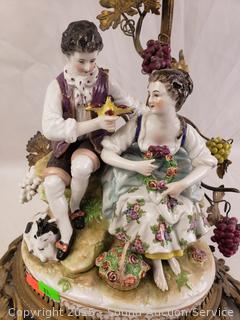 Lot #0083: Vintage Victorian Porcelain Love Bird Figural Lamp