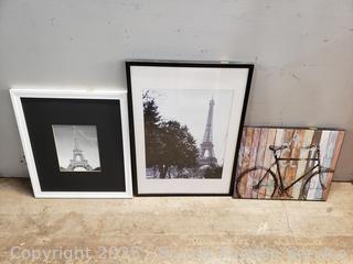 Lot #0271: 2 Eiffel Tower Photos & Bicycle Print Decor