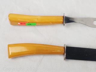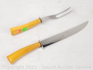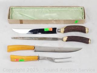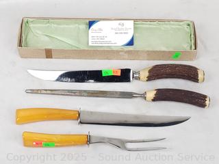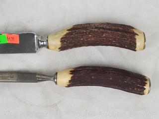 Lot #0178: 2 Vintage Stag & Bakelite Handle Carving Set