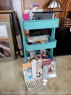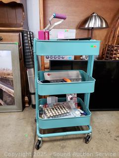 Lot #0049: 3-Tier Cart w/Arts/Crafts, Office Supplies