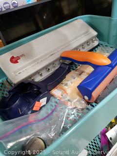 Paper cutter, hole punch, rollers, applicators, etc. 31" H x 17" x 12".