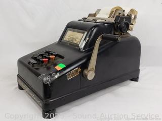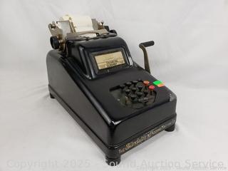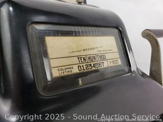 One button is broken, missing. Buttons don't appear to be changing number added crank & printing are working. Comes with a cover. Don't see any issues.