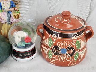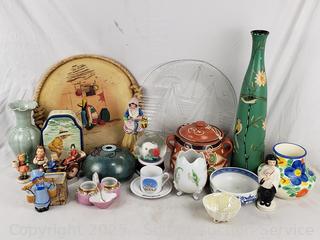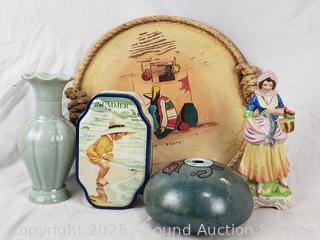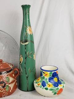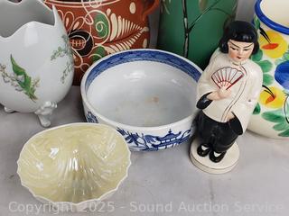 Tray, vases, pots, figures,etc. Refer to photos for lot contents, more details.