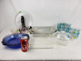 Bowls, baking pans, pie pans, measuring cups, etc. Refer to photos for lot contents, more details.