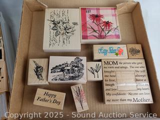 Lot #0302: Assorted Rubber & Wood Block Ink Stamps