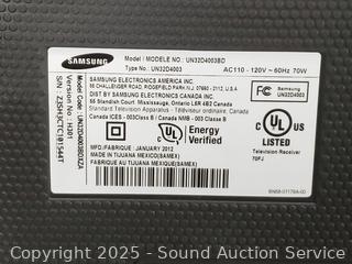 Model UN32D4003. Appears to be functioning as intended. NO power cord.