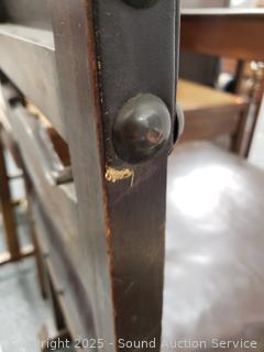 46.5" H x 17" W x 19" to seat. Some scuffs, wear to finish.