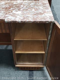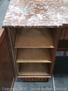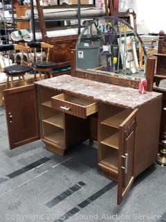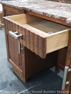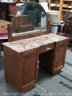 Lot #0004: Antique Oak Quartersawn Oak Marble Top Vanity Wash Stand