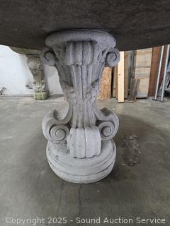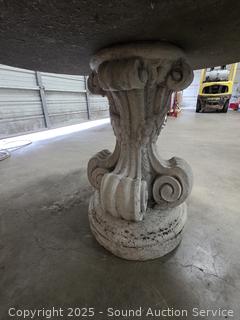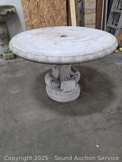 Various weathering wear. Has a spot for an umbrella. 30" H x 42" Dia.