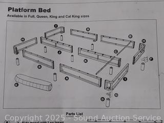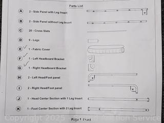 Unassembled, comes with instruction. Unsure on the size believe it is queen. Don't see any issues, appears complete.