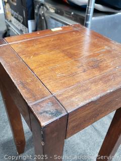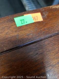 21.5" H x 11" x 11". Some scuffs, wear to finish.