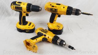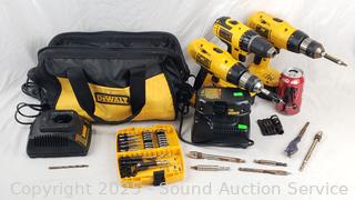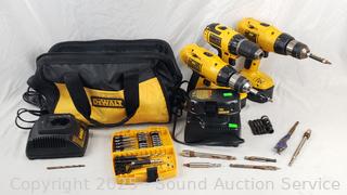 Lot #0029: 3 DeWalt 18V Cordless Drills w/3 Batteries 1 Charger, Bag, Bits