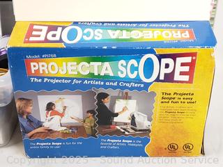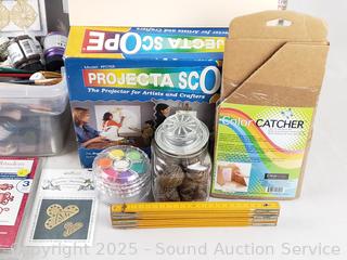 Paper, paints, textures, display, projecta scope, brushes, lap desk, etc. Refer to photos for lot contents, more details.