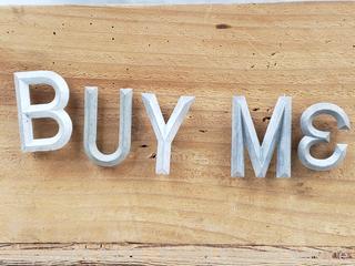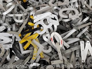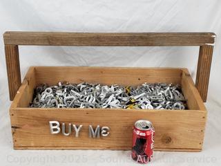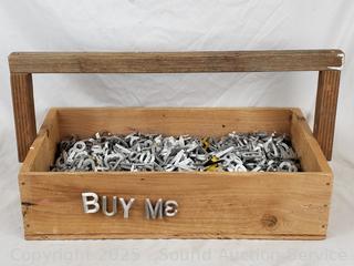 Lot #0301: Assorted Cast Metal Tack Letters w/Wood Tote