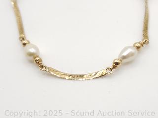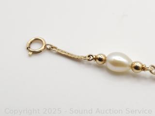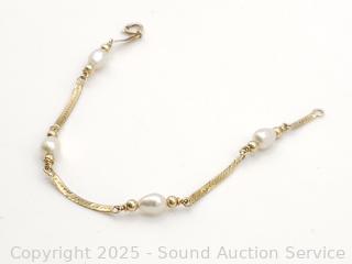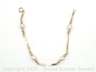 Lot #0080: 14K Gold & Pearl 6" Bracelet