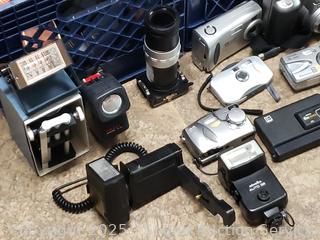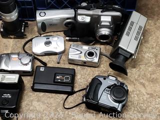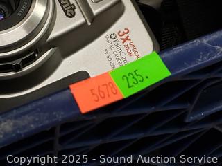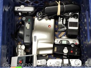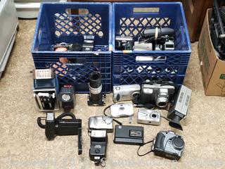 Lot #0235: 2 Milk Crates Full of Assorted Camera's & Camera Accessories