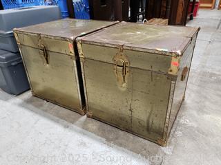 Lot #0042: 2 Tin Wrapped Latching Wood Boxes
