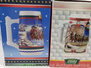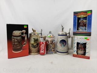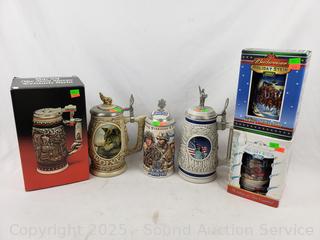 Lot #0170: 4 Budweiser & 2 Avon Steins