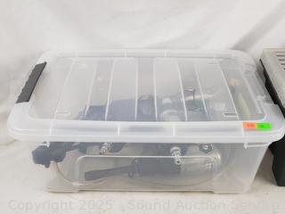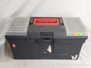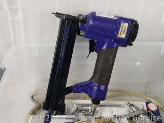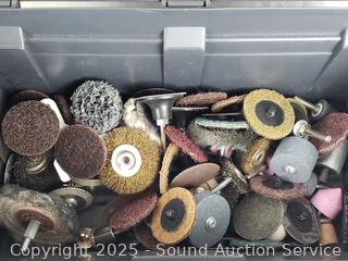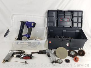 16" toolbox full of grinding/polishing discs. Pneumatic Air Hammer, Rotary Tool, Drill, Air Nailer Stapler, 3-Way. 6" x 10.5" x 16".