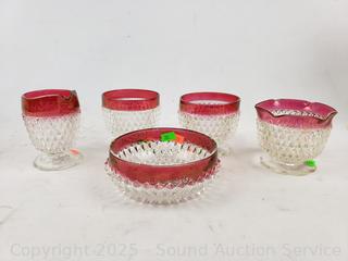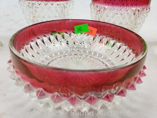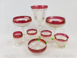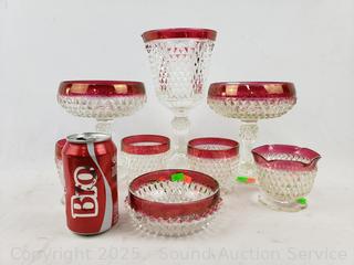 Lot #0302: 8pc Ruby Flash Sawtooth Glassware