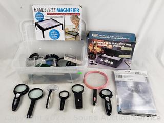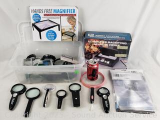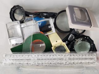 Magnifying sheets, hands free magnifiers, handles magnifiers, negative viewer.