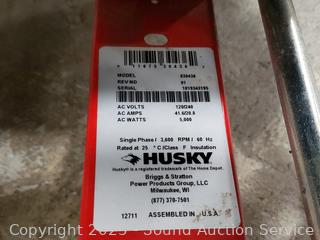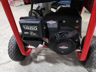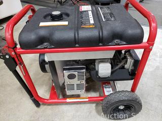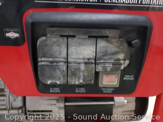 Starts/runs! Foot on handle side is bent. 6250 starting watts. 26" H x 27" x 18".