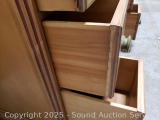 Appears to be all wood construction, dovetail joinery. Some scuffs, wear to finish. Matches the previous lot. 30.5" H x 46" W x 19" D.